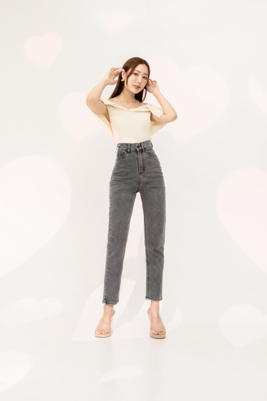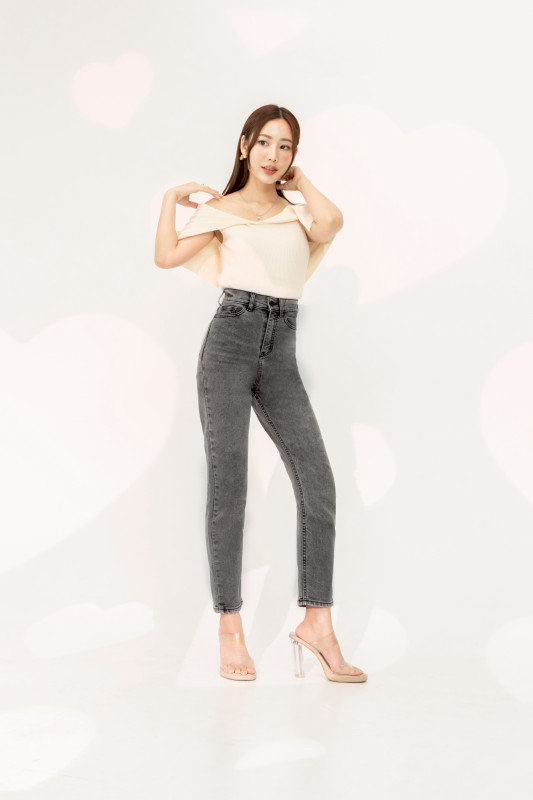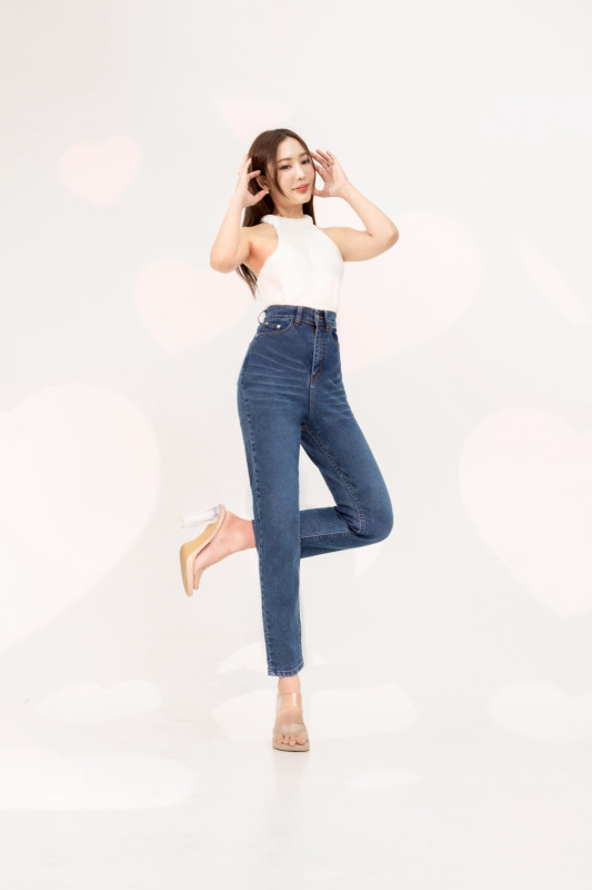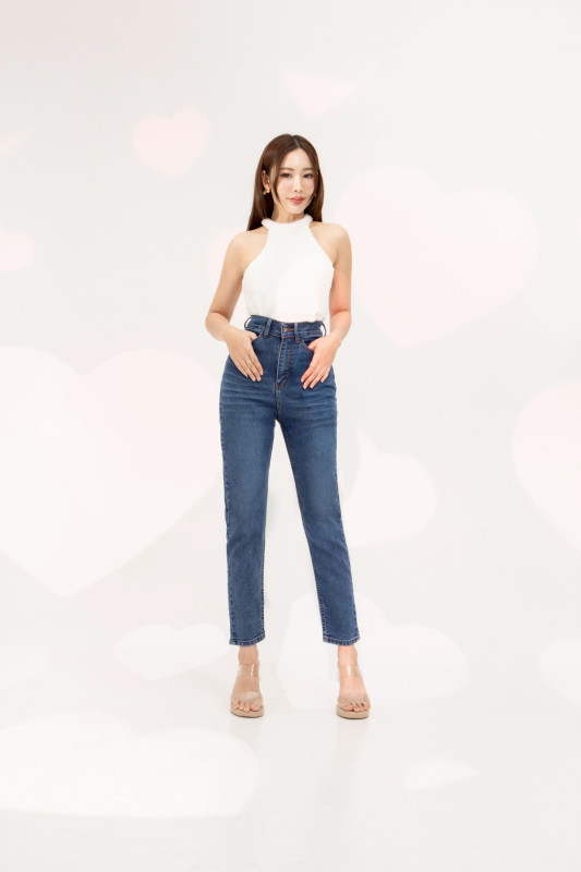 กางเกงยีนส์ รุ่น H8 ทรงบอลลูน ผ้ายืด เอวสูงเหนือสะดือ